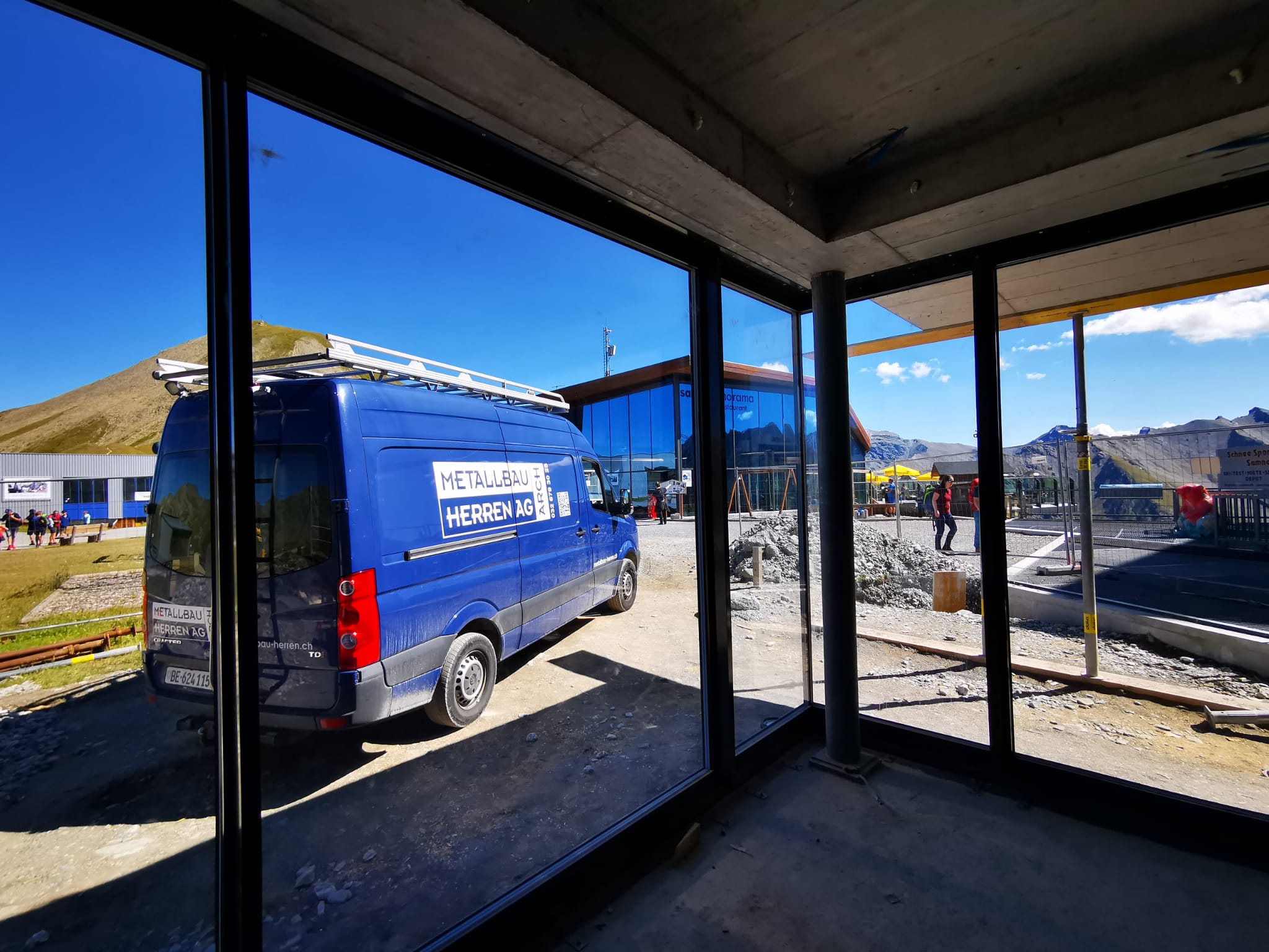In der Bergstation der Seilbahn am Twinliner-Alp-Trida-Sattel montierten wir Fenster und Türen unter besonderen Bedingungen auf 2500 m ü. M.